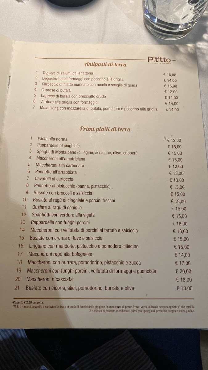 Welcome to Pititto Ristorante, nestled in the heart of Agrigento, Italy. This charming eatery offers a delightful array of non-seafood dishes that cater to diverse palates. Customers rave about the heavenly carbonara and the rich porcini mushrooms busiate, showcasing the restaurant's expertise in traditional pasta dishes.